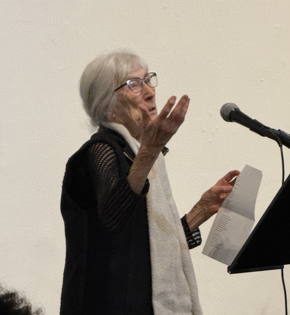 I knew the dozen other performers would share poems, songs, and dances, so I wanted to mix it up with a speech, much like the speaking I do as Master of Ceremonies at the poetry readings that I’ve been hosting in town for about 20 of Allegra’s 95 years.